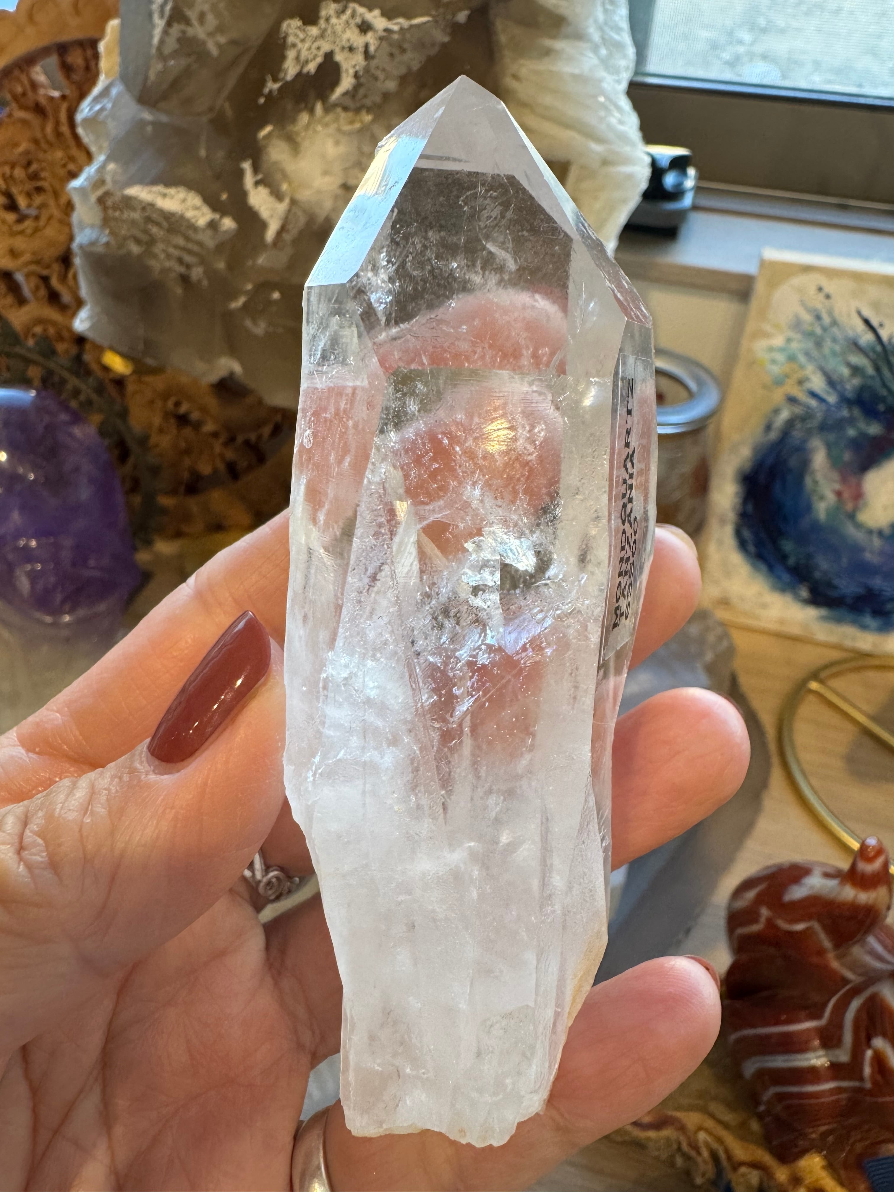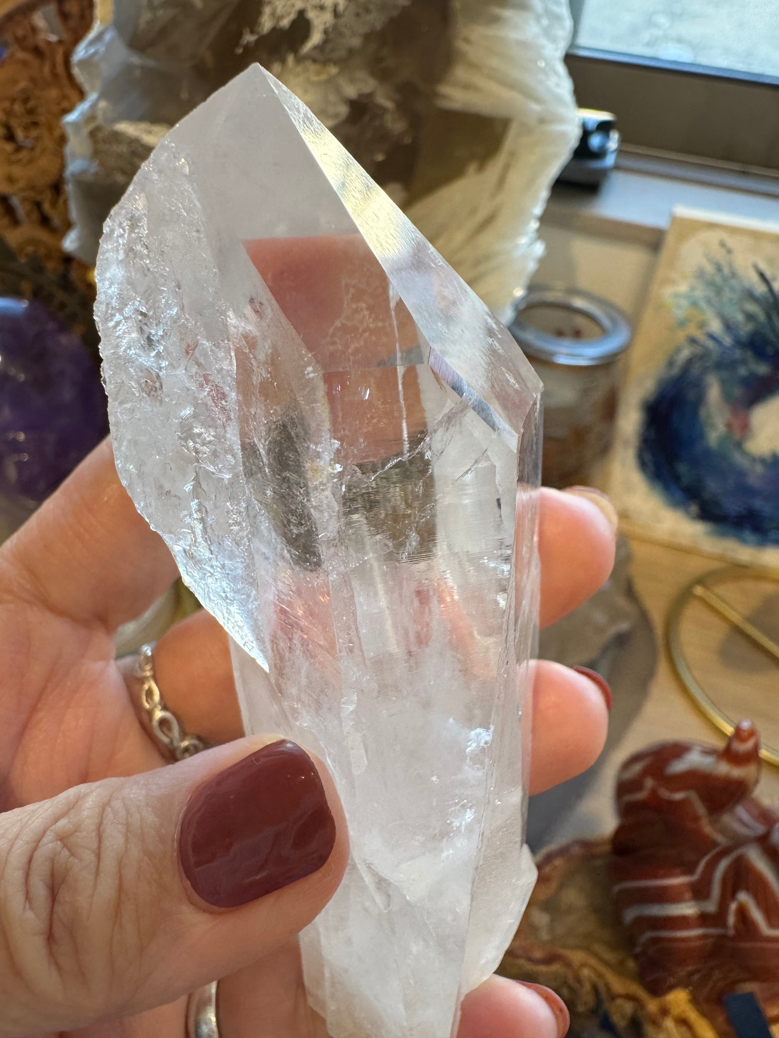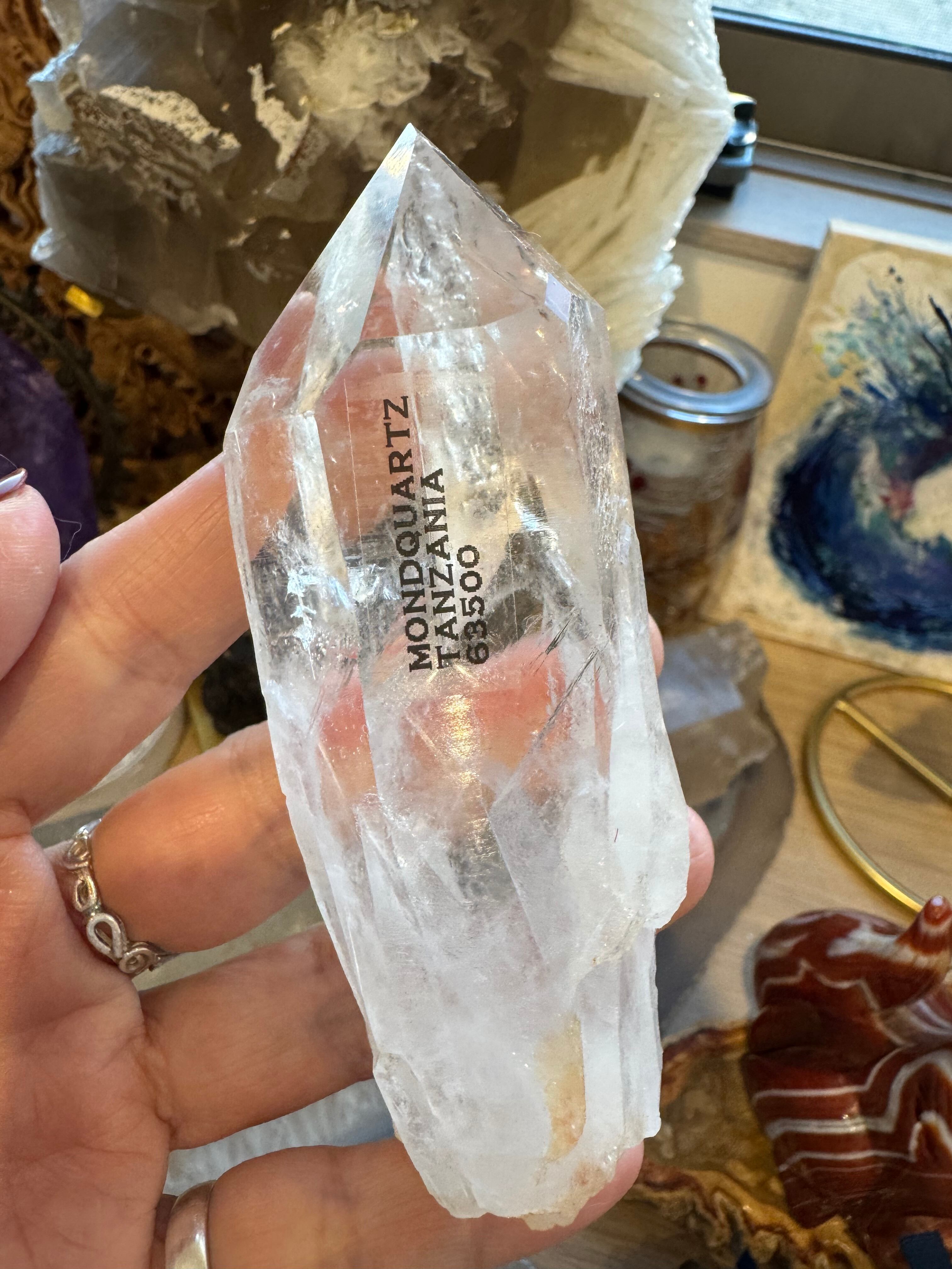 こちらは一点ずつ、透明度、結晶の張り、光の通り方、全体のバランスを細かく確認し、基準を満たしたものだけをセレクトしています。モンドクォーツの中でも、透明感と完成度を重視する方にこそ、手に取っていただきたい一本です。 心に響くものを見つけていただければ幸いです!