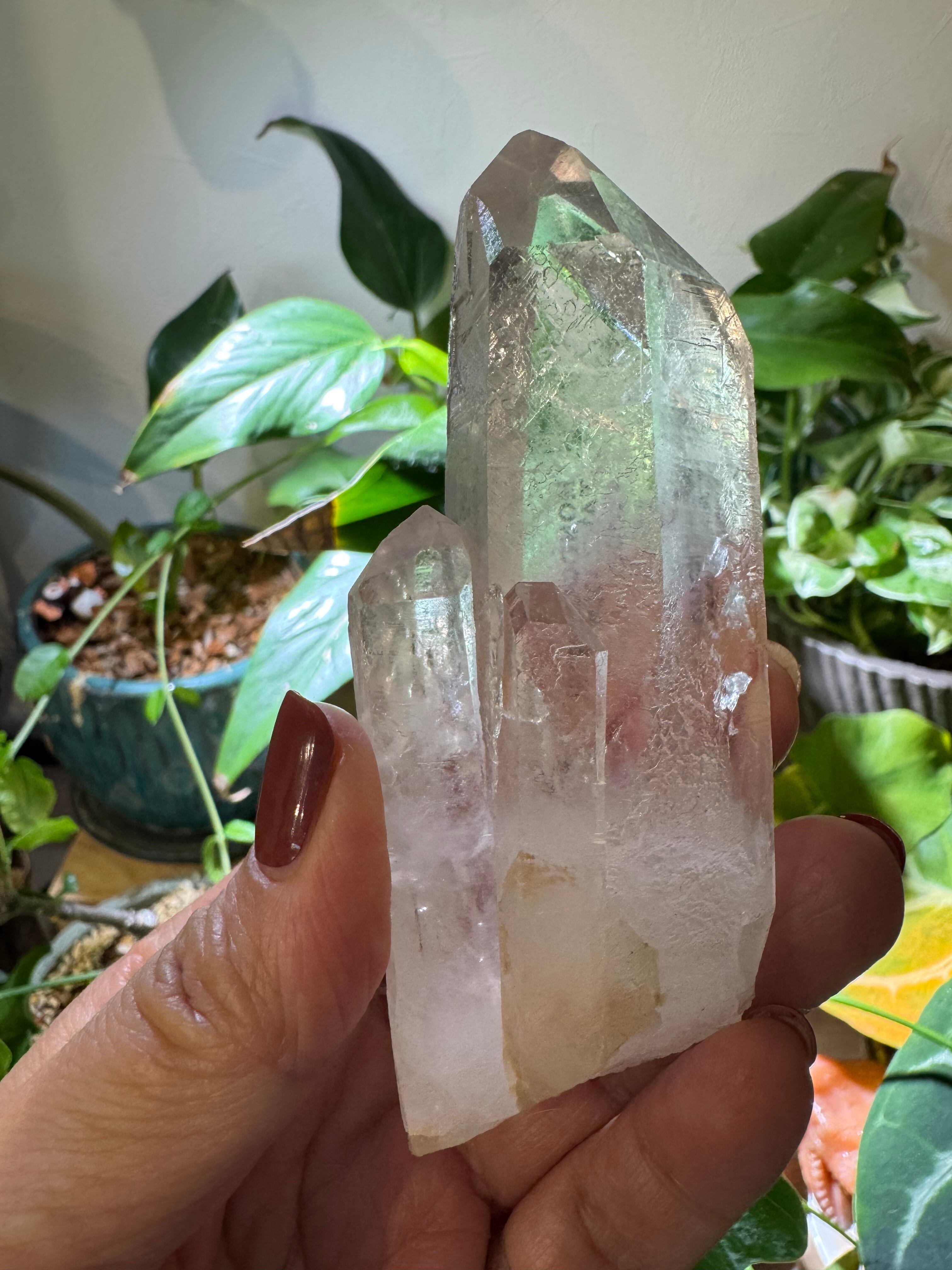 こちらは一点ずつ、透明度、結晶の張り、光の通り方、全体のバランスを細かく確認し、基準を満たしたものだけをセレクトしています。モンドクォーツの中でも、透明感と完成度を重視する方にこそ、手に取っていただきたい一本です。 心に響くものを見つけていただければ幸いです!