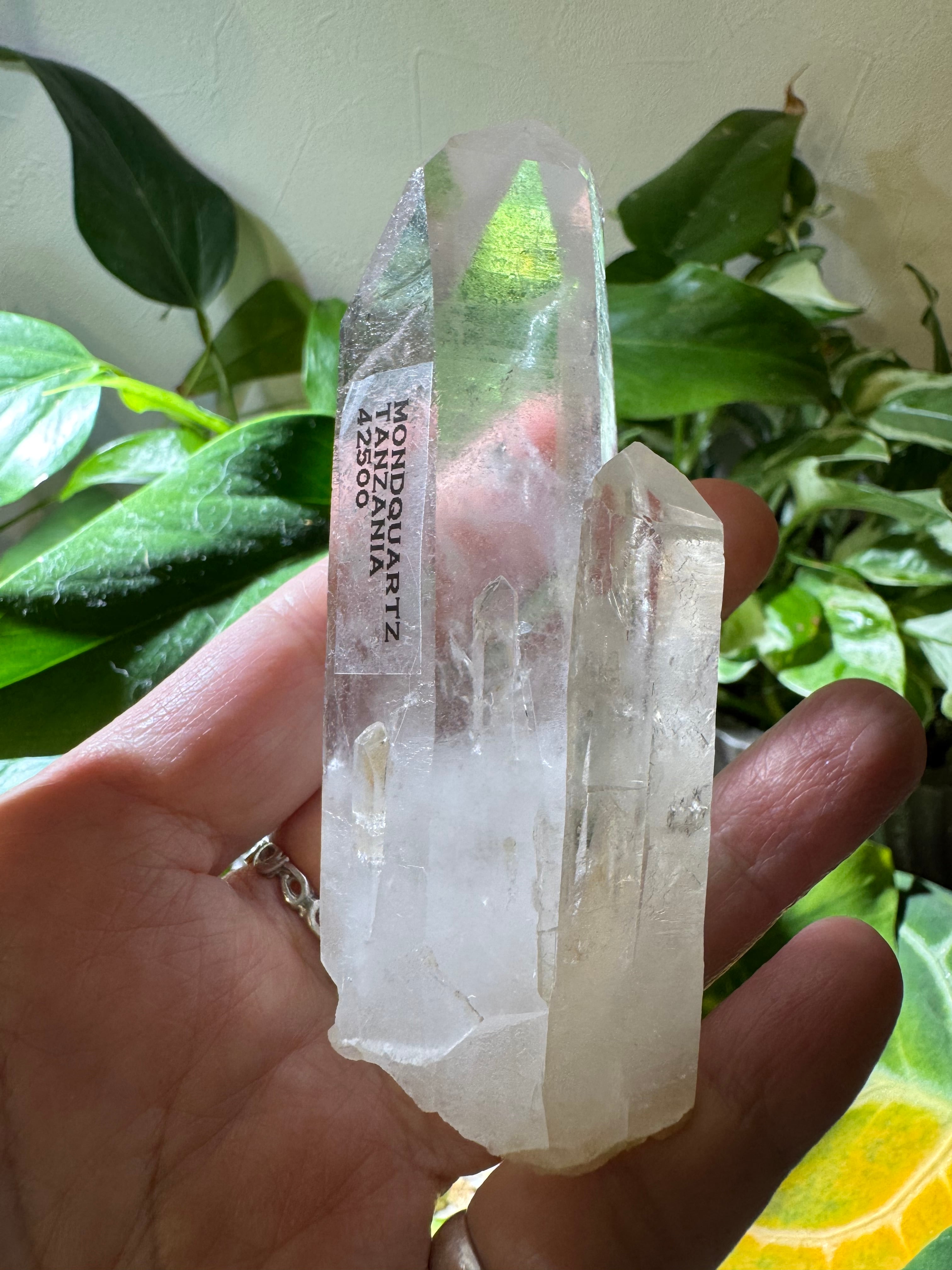 こちらも、透明感・内部構造・結晶の立ち姿、そのすべてに「モンドらしさ」がしっかりと現れている一本です。トップはシャープで端正。結晶が自然に成長した美しい成長フォルムが感じられ、モンドクォーツ特有の削ぎ落とされたような美しさが際立っています。